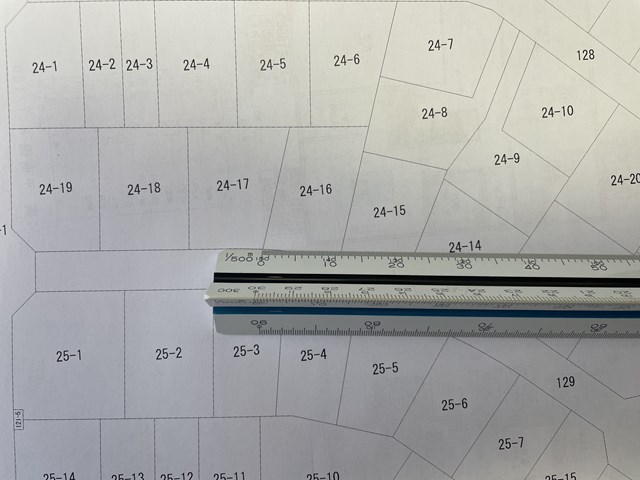 ココは区画整理地なので、測量図が無い為公図をメモリ読み👀 ※地権者には測量図の代わりに換地図というものが発行されます☝