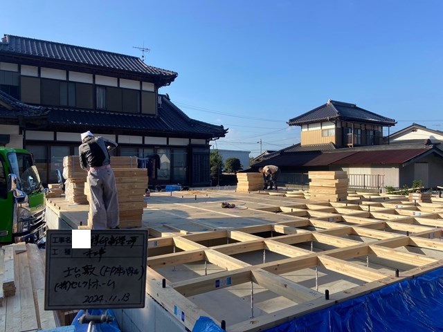 床断熱材をはめ込む作業ができるんです👍