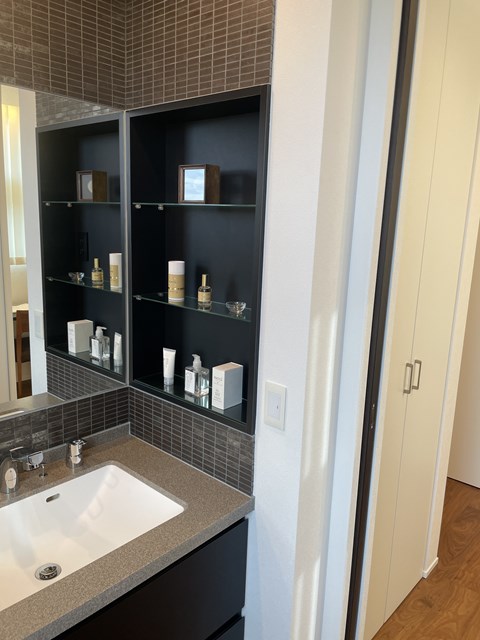 鏡のサイズに合わせた収納ニッチもキレイですねぇ~。よし!TTP決定👍