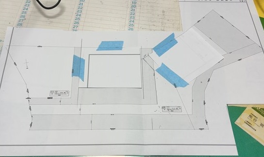 こうやって入れたい建物を縮尺合わせて紙でカットして配置するとお~