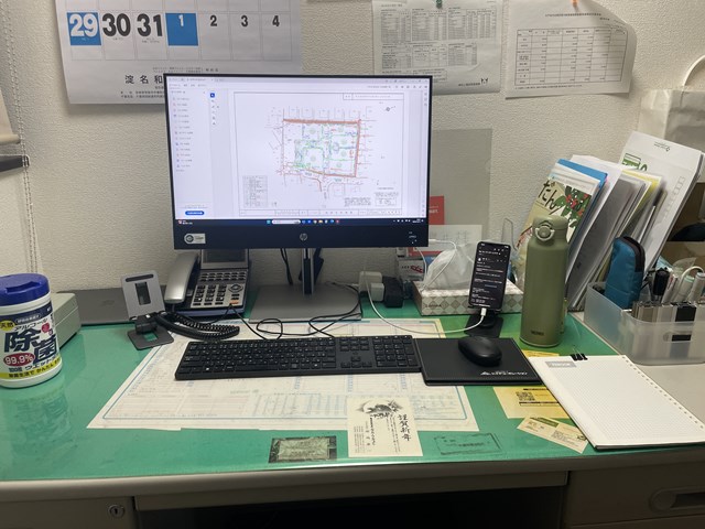 ケータイは二刀流で、右のケータイはZoomの時に画像共有する時にちゃんとお客様が見えているかを