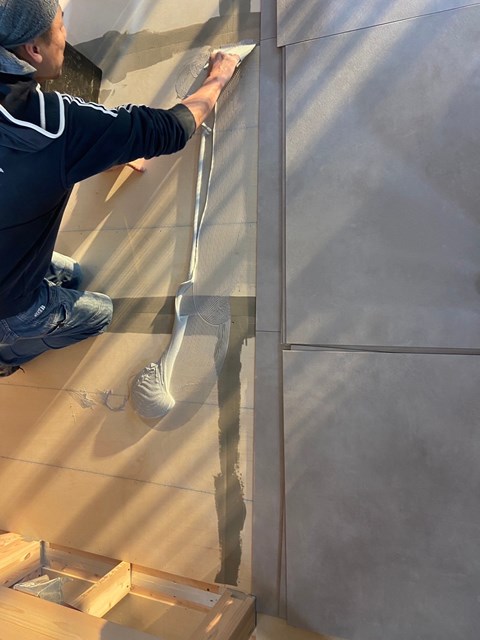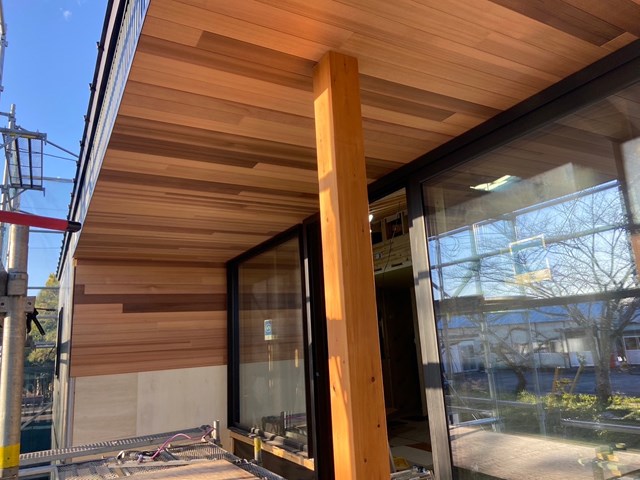 大工Yさんがレッドシダーのバランスを見ながら施工してくださってます✨