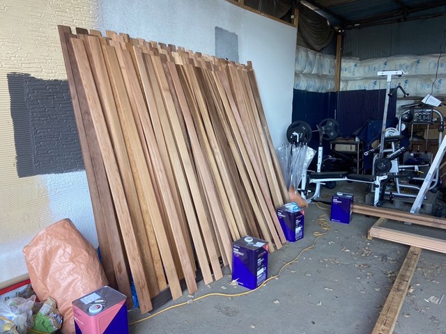 ご主人が塗ってくれたレッドシダー、乾燥待ちですぅ~