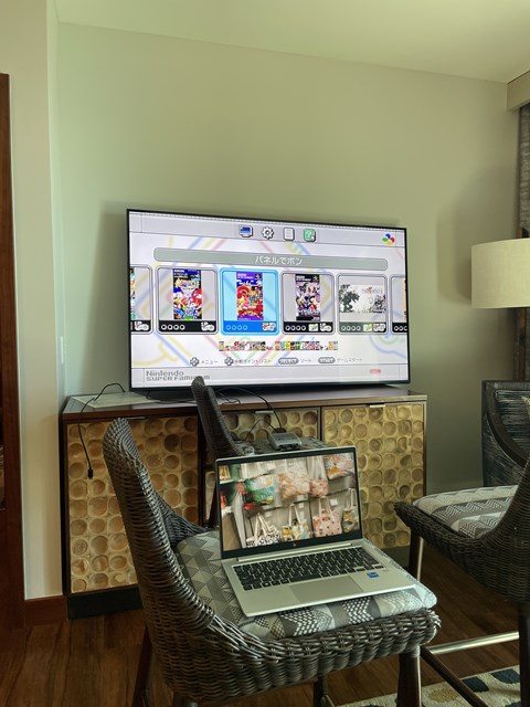 壁掛けテレビを外して、日本から持ってきたゲームにつなぎ