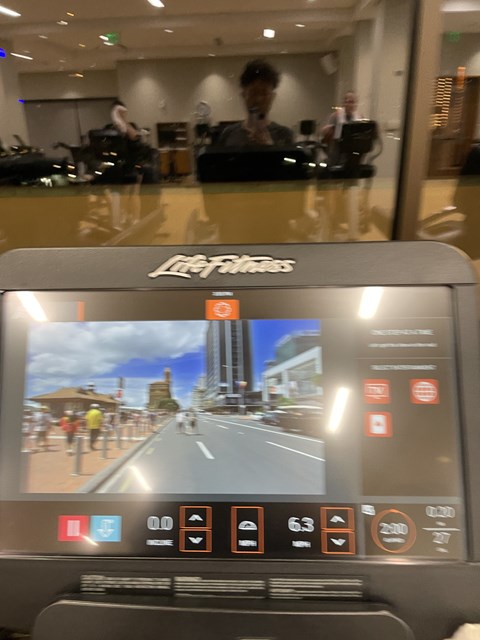 Hiltonのランニングマシーンは、世界観光名所が選択できて見ながらRUNできますぅ⤴