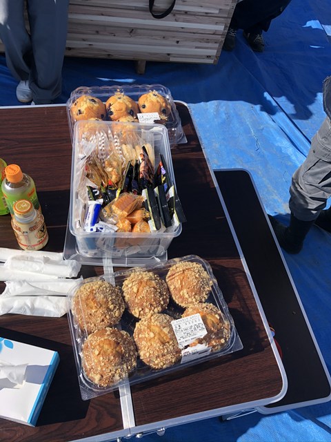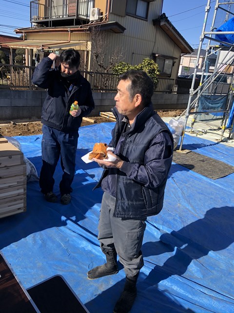 食べ物に一番初めに手を出す大工Kさん。多分一番食いしん坊です。。。