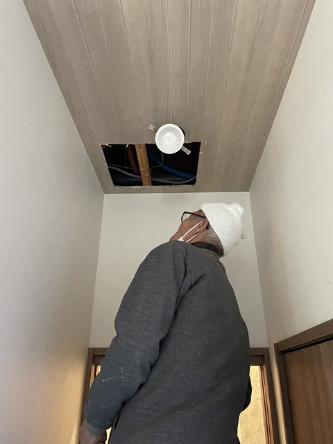 天井を大工Oさんに開口してもらい