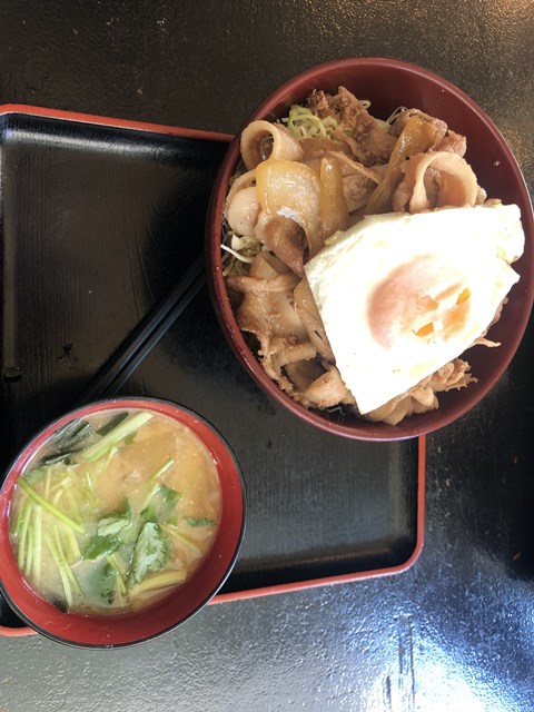 ランチがドンブリとそばセットって言われて食べれる自信が無いっていったらみそ汁出してくれた🤩