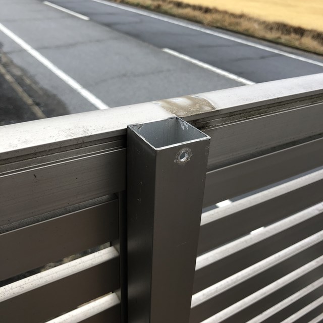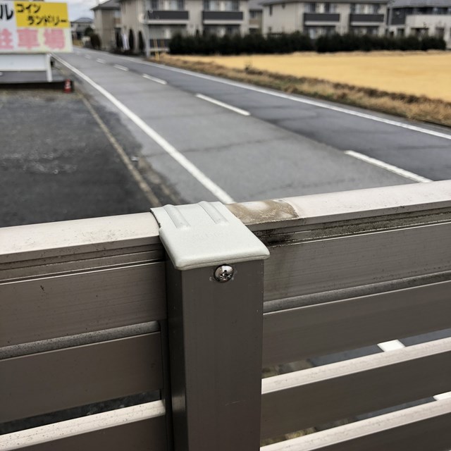 でも、その前に通り道沿いに外構現場があり部材の取り付け。