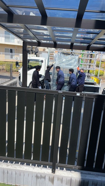カーポートの柱ラインにアルミ柱を足して、金属サイディング仕様です👍