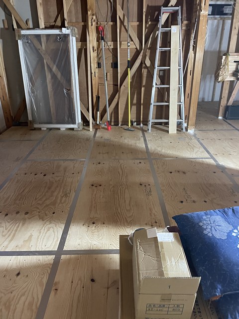 床も気密テープ貼られて、順調に進んどりますぅ~♪