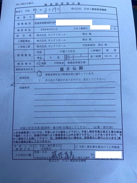 阿見町 K様邸にて建物完了検査。