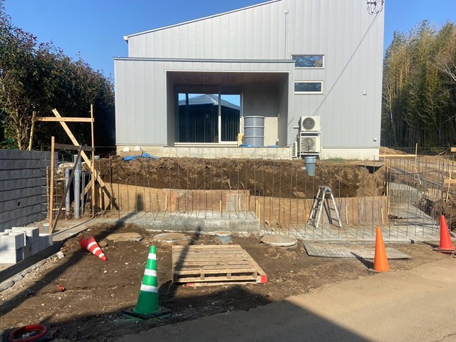 取手市 K様邸にて外構Tさんと型枠の墨出作業みたいですぅ~。