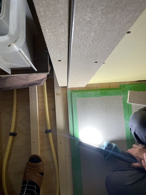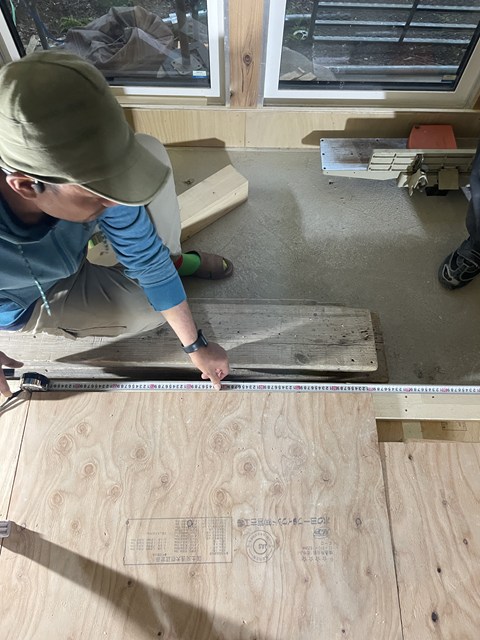 板金巾木が4mものだから、どこで繋ぐかを打ち合わせしております。