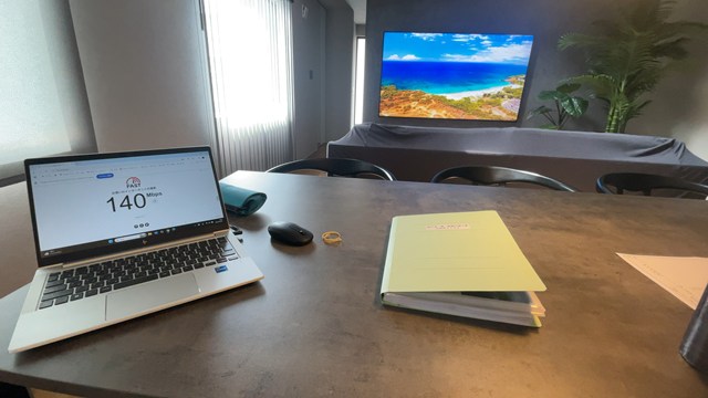守谷モデルのインターネット速度測ると、会社の倍早いって、、、(・_・;)