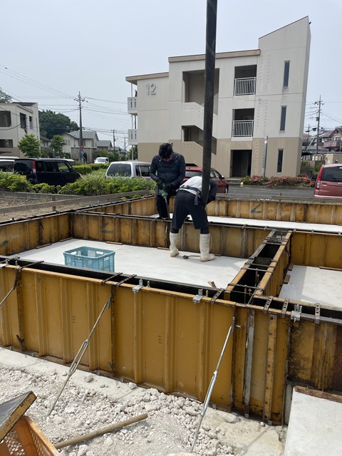 今日立ち上がりの打設なんですけど、午後からみたいねー。