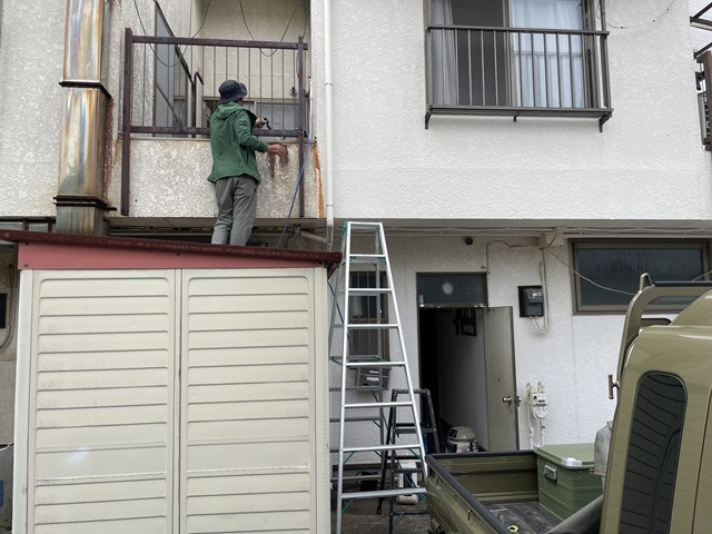 お客様からは空き部屋の隣ベランダ排水から来ていると聞いて、とりあえず散水してみたところ