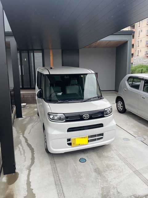 ポーチ屋根に連続して駐車スペースのカーポートが来てるから、ベスポジっしょ!