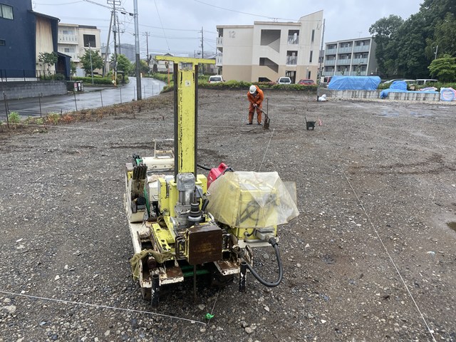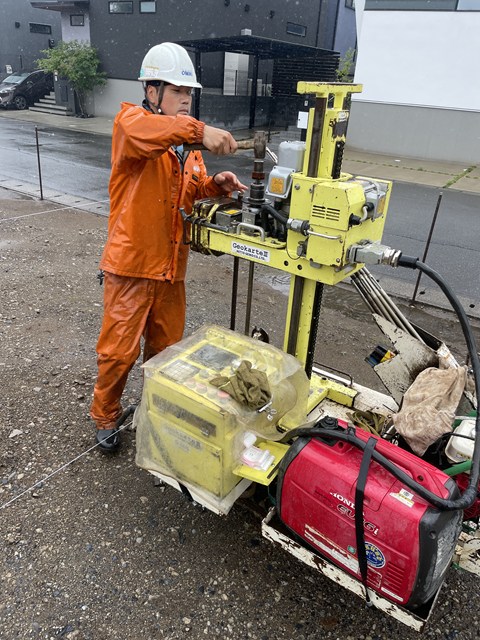 雨降る中、地盤調査スタート٩( ”ω” )و