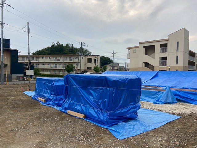 ここまでしっかり養生しておりますが、床合板は晴れている日に工場へユニックちゃんで積みに行って