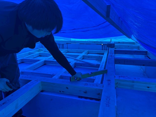 ちゃんと動き回れるように、大工さんが小屋裏空間みたく屋根にしてくれてますねぇ~♪