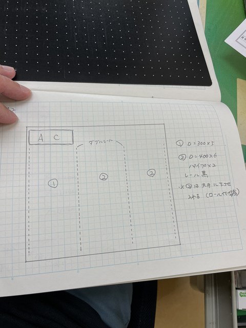 手書きでもこういう絵がある状態で、実際その場所で打ち合わせをすることによって