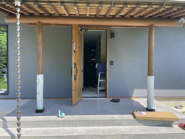 このポーチ屋根を活かしたくて、ジャッキUPしたり、難題は多々( ̄▽ ̄;)