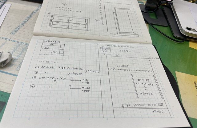 扉の開口幅や、どう見せたいかなどの納まりを考えて書いていると
