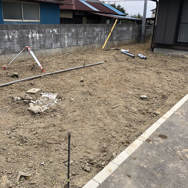 やっぱ写真だとわからないねー。建てるガレージの配置を出してるんだけど、みえませんねー。