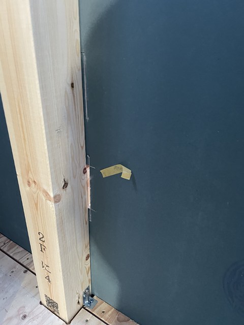 このマスキングテープの貼り方は、インスペクターY君来たの?って大工Yさんに聞いたら