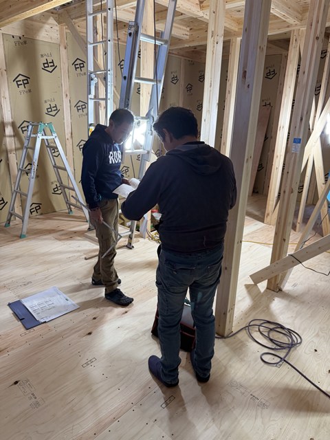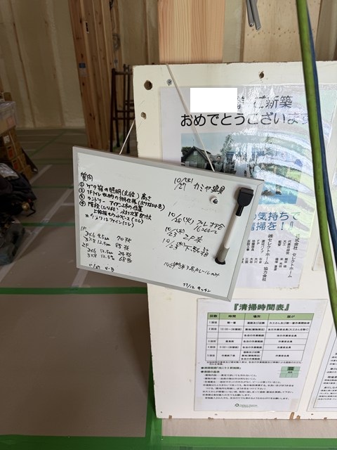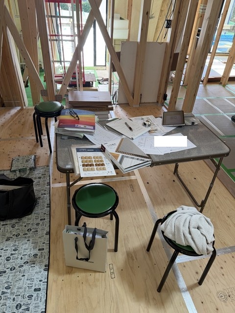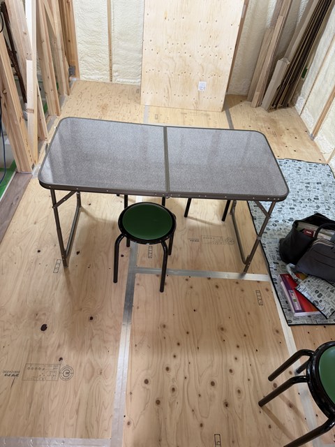 まだ12時50分で大工さんたちお昼休憩中ですぅー。