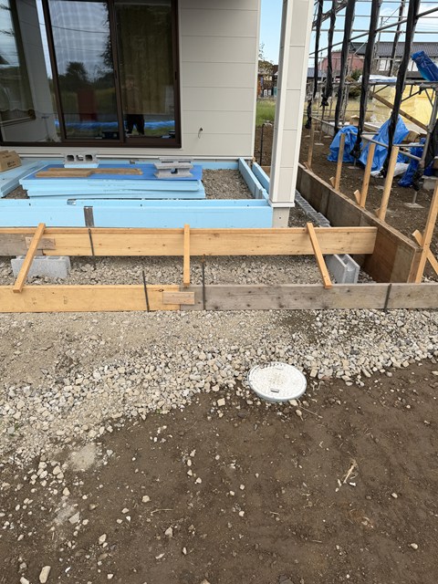やっぱりだ💦 お隣の基礎工事で杭が埋められているわ。