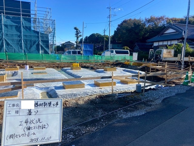 守谷市S様邸、捨てコン作業手伝ったのねー。いよいよスラブ配筋組みがスタートだぜ👍