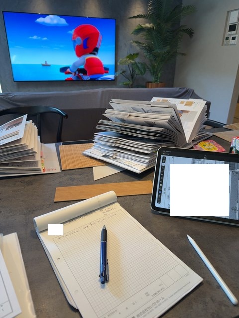 ですのでー今日はサンプルブック持ち帰りではなく、この場で再度取り寄せるサンプルを検討していただいてます(*ロωロ)ゞクイッ✧