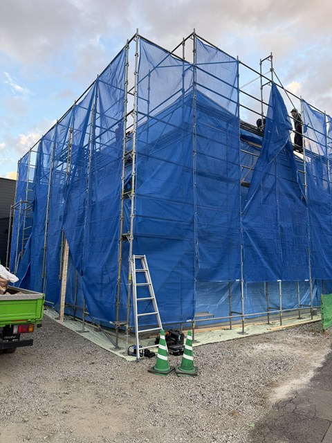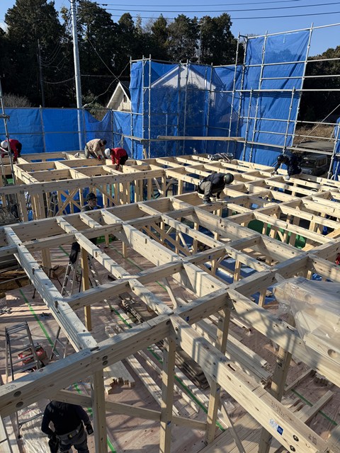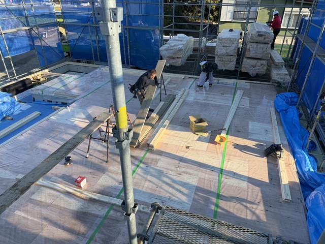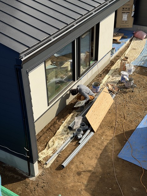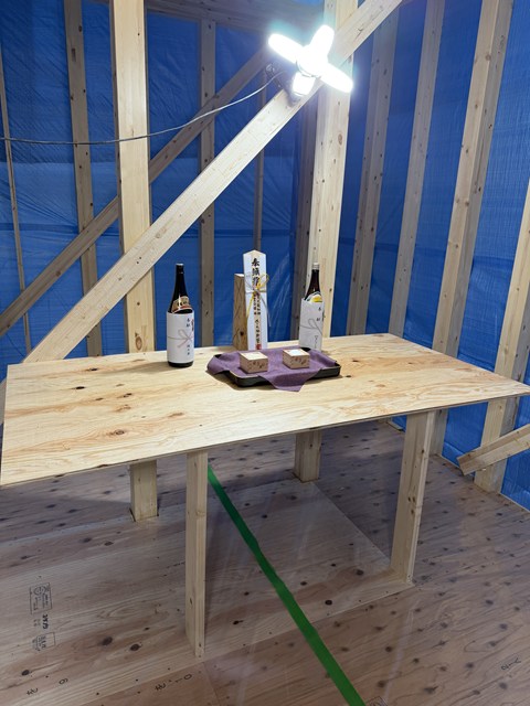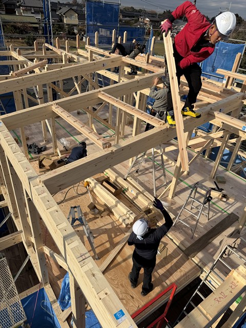 大工さんたちは完全な雨パック作業中の時ぃ~室内では・・・!