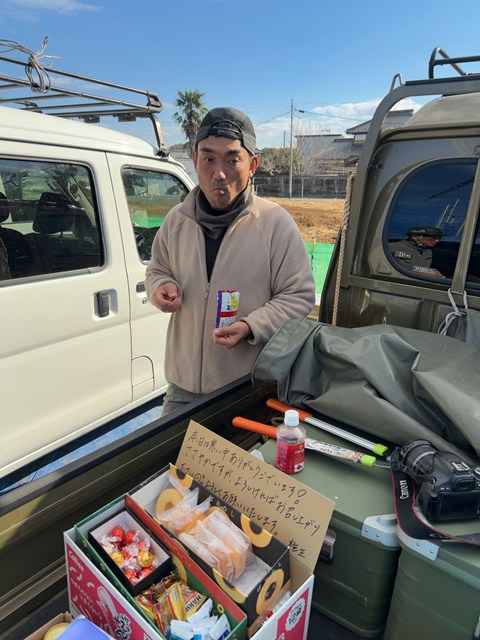 カメラから逃げる担当大工Yさんも、とまらな!って言ってメッチャ食べてますww