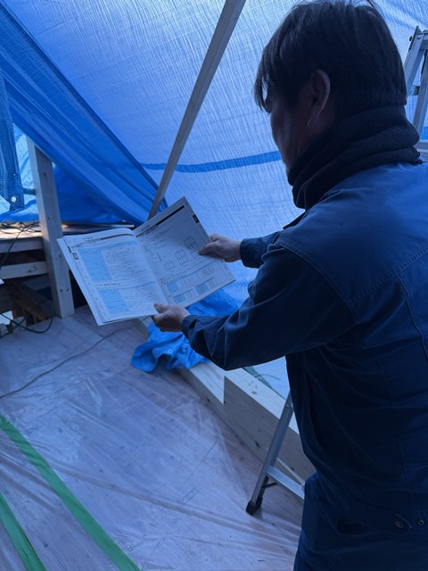 カントクゥ~がすぐにその場で確認☝ 建築現場では当たり前ですが、ミリ単位で追ってますw