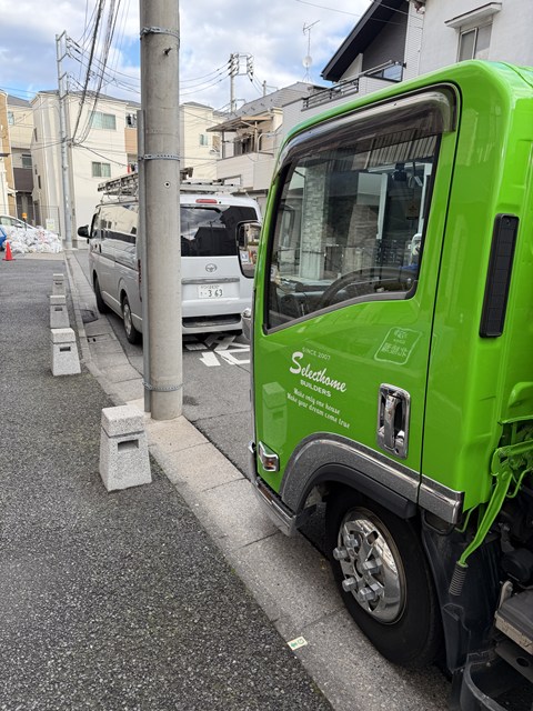 今朝はぁ~7時半事務所出発でユニックちゃん1台でカントクゥ~と大工Kさんと3人ギュウちゃんで都内ですぅ💦