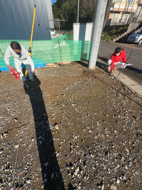 いつもお願いしている測量会社さんがちょうど来てくれた!