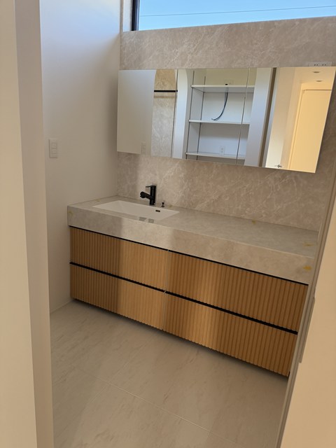 お初で、造作洗面扉をタンボアで仕上げてみました☝
