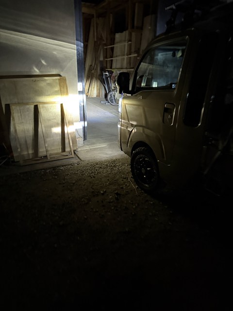 照明が無くなってて、真っ暗ヨ。ですのでー軽トラちゃんでライトアッププ。。