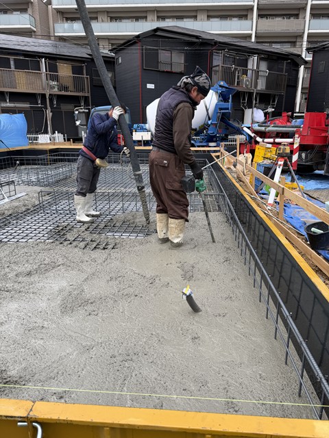 芸術的なスラブ配筋がどんどん見えなくなっていきますぅーーー。