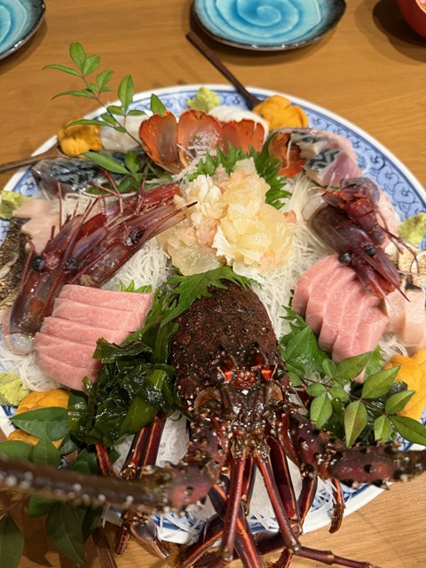 豪華な刺し盛♪ イセエビはおひげとおめんめが動いていて