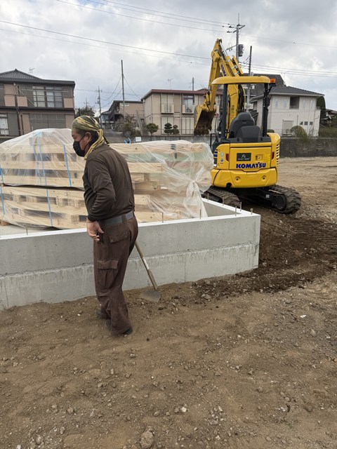 土台工事が金曜日からスタートするので、土台が本日納品!
