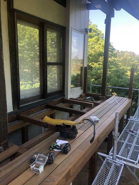 雨漏れ改修工事は完了し、仕上のデッキ工事に取り掛かっております。