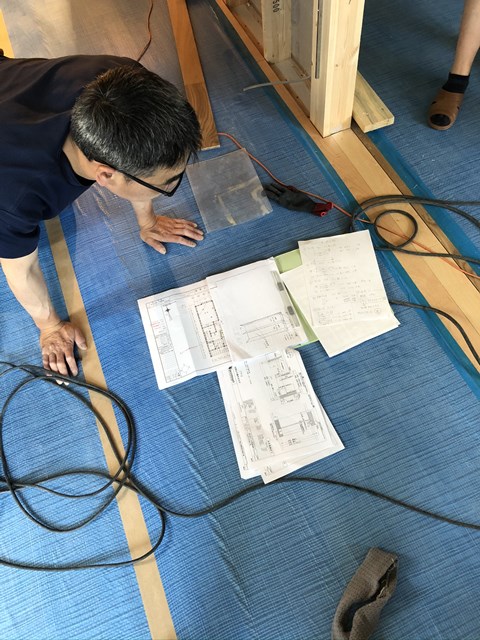 大工Yさん。ワタクシの造作図を少し勘違いしてしまってて悩んでるところに~