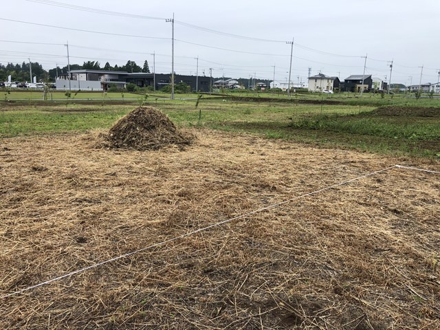 カントクゥ~が一生懸命集めた草の山に当たってダメかも(;’∀’)