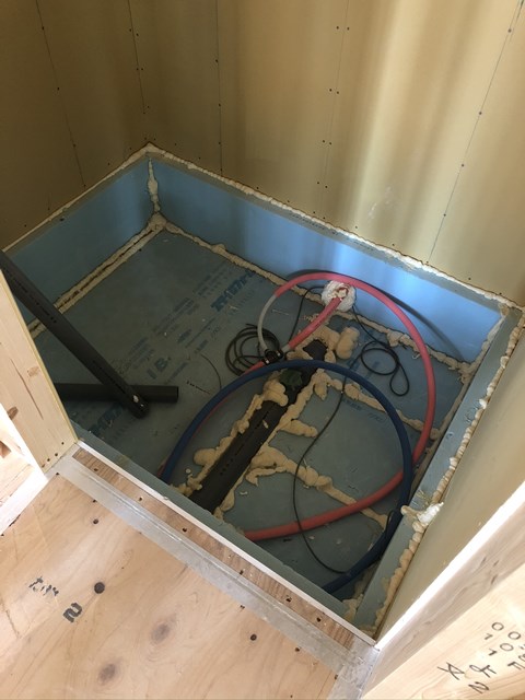 ユニットバス施工前の断熱、ボード処理完璧だな。