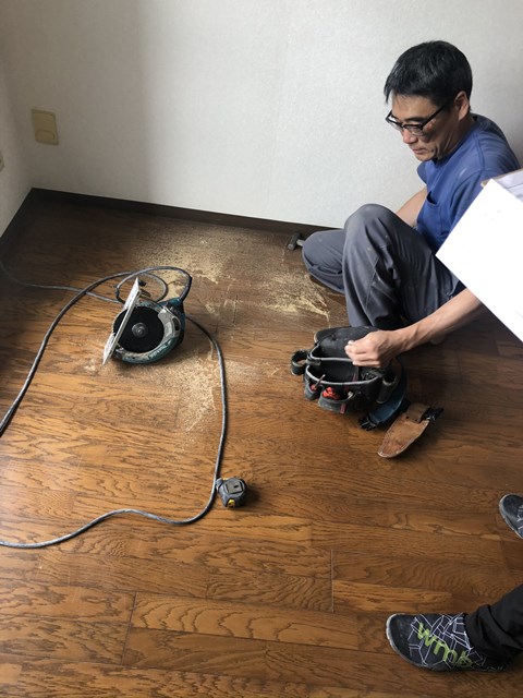 床に切れ目を入れます。