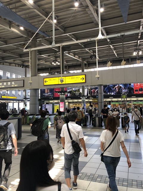 電車で品川まで行ったのですが、先日の平日とは違い電車の椅子には隙間なく